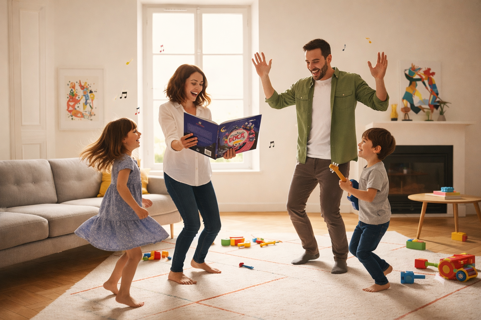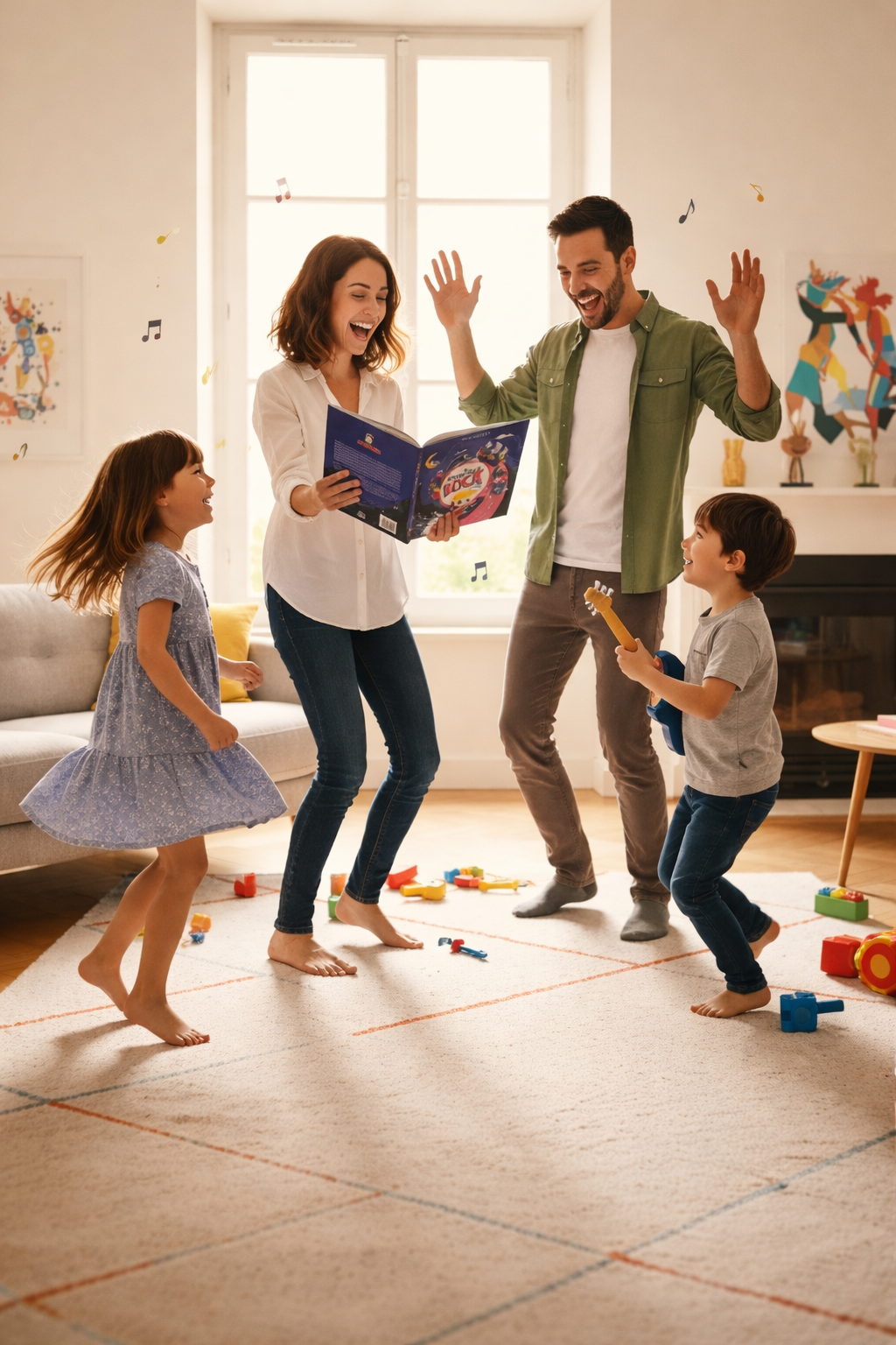 Le livre qui fait chanter toute la famille, au rythme du rock.