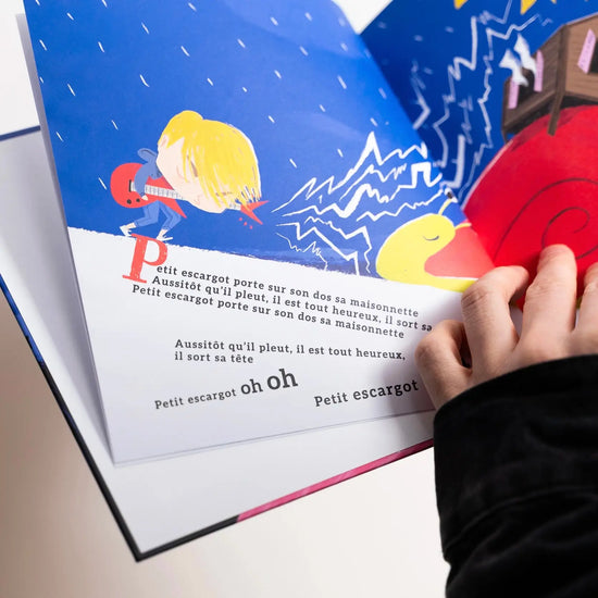 Je découvre les illustrations colorées et les paroles des 11 comptines revisitées en version rock, présentées comme une histoire à parcourir.